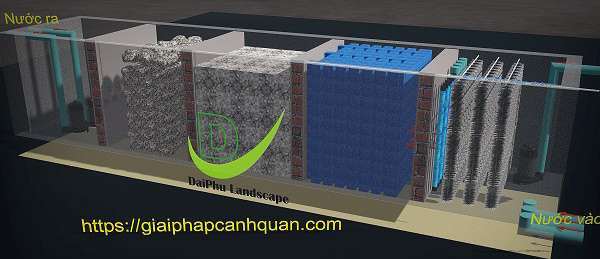Bản vẽ hệ thống lọc hồ cá Koi 3D và hiệu ứng thực tế