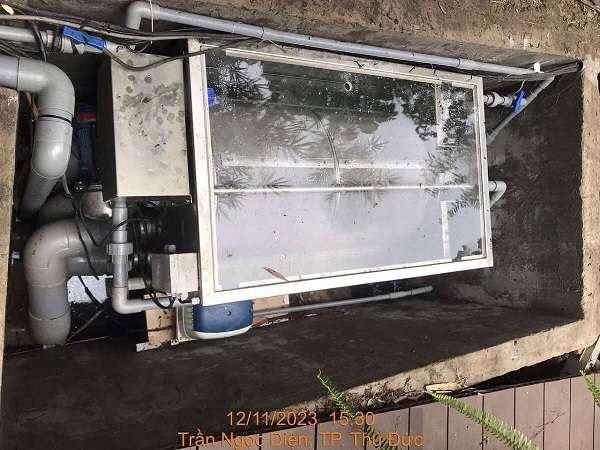- Lắp đặt vật liệu lọc, máy bơm, đèn UV, máy Ô-xy vào các ngăn lọc