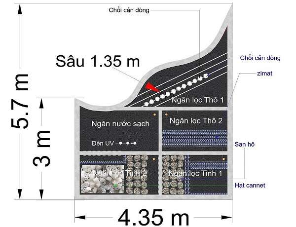 Bản vẽ mặt bằng hệ thống lọc hồ cá koi