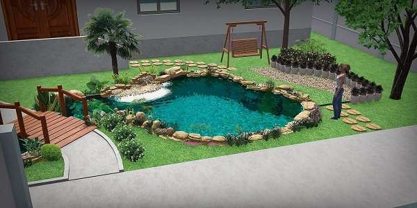 Bản vẽ 3d hệ thống lọc hồ cá koi theo hình dạng bất thường