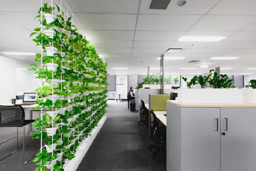 Hiện nay, xu hướng trồng cây xanh có khả năng lọc không khí tốt như: lưỡi hổ, dương xỉ, cẩm tú cầu... được nhiều văn phòng ưa chuộng. Mục đích chính là giúp môi trường trong lành, thoáng mát và tăng cường sức khỏe cho nhân viên.