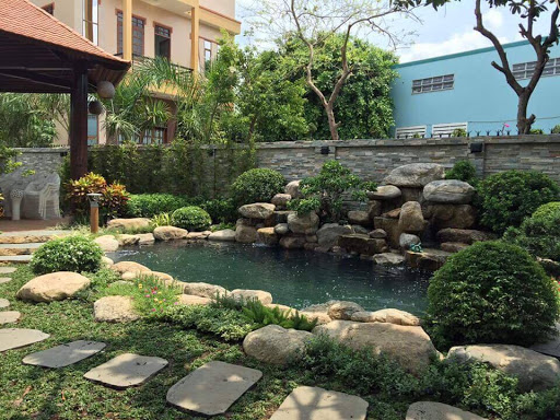 Sắc xanh thăm thẳm, huyền bí của hồ cá sẽ được tạo nên bởi sự xuất hiện của cây xanh ở xung quanh hồ. Lựa chọn này có thể giúp bạn hạn chế ánh nắng mặt trời chiếu vào hồ để nước trong hồ cá luôn mát mẻ. Ngoài ra, yếu tố này còn mang đến cho bạn một công trình thi công hồ cá Koi để bạn có được cảm giác yên bình, thư thái khi nhìn ngắm đàn cá Koi tung tăng bơi lội trong hồ cá.