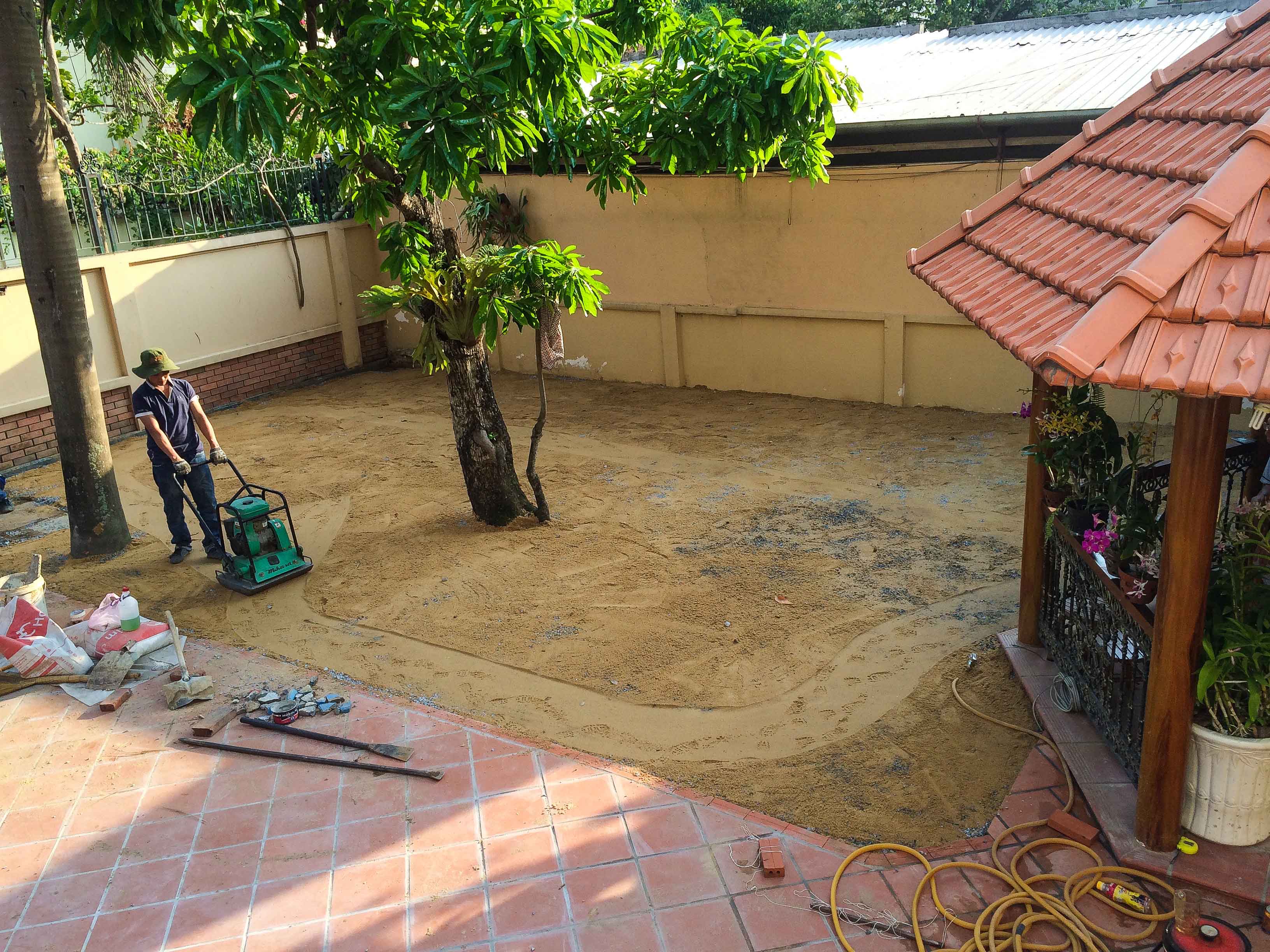 Chuẩn bị mặt bằng thi công cỏ sân vườn