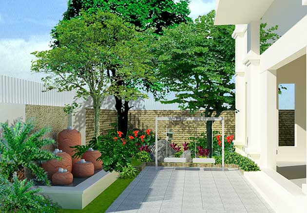 Hầu hết các công trình thi công sân vườn biệt thự Quận 6 đều có sự xuất hiện của tiểu cảnh. Vì sao vậy? Bởi nó tạo nên điểm nhấn cho không gian này. Đồng thời, thông qua tiểu cảnh, bạn cũng có thể khẳng định được gu thẩm mỹ đẳng cấp riêng của mình. Đó là lý do mà sân vườn của biệt thự nên có các tiểu cảnh khi thi công.