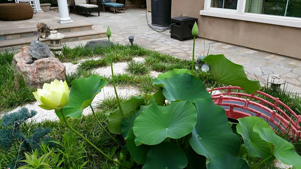 Thiết kế tiểu cảnh sân vườn hoa sen lớn